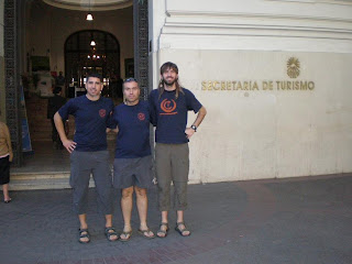 upon finishing of reaching a few hours ago Mendoza by bus (12 hours from Buenos Aires). The flight was three hours late in arriving in Buenos Aires. The time difference in Spain is 4 hours. The expected "Alexander," which a few weeks ago and now there is to know ... The photo is the door where the permits are processed by the mountain. Tomorrow they go to "Punta de Vacas" (3 hours drive) to the first stage of approach ... This already!