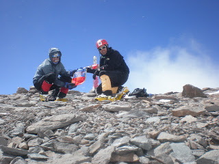 at 15:40 pm and after 13 hours of intense wound to the roof of America and Lluís Cabo Jorge Pallares, becoming the first expedition that crowned the summit via this route as it takes time.